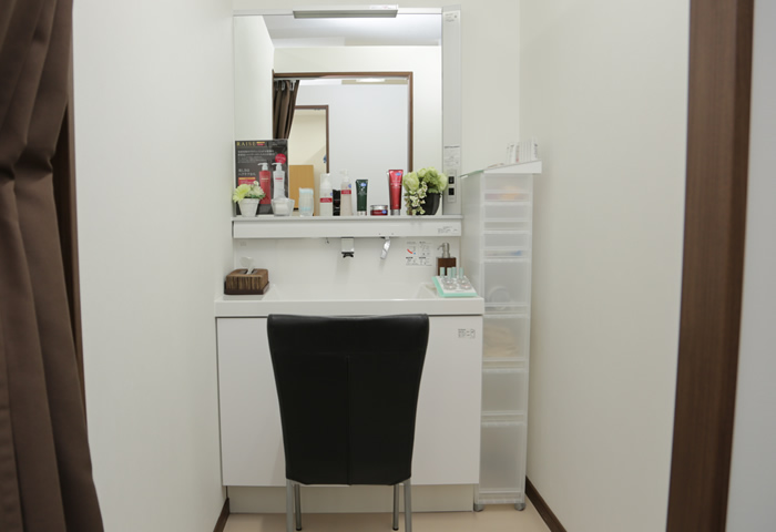 手術後はパウダールームで目もとをご確認いただきます。医師・看護師が手術について丁寧にご案内いたします。(施術方法によっては術後しばらくは腫れが残る場合がございます。)