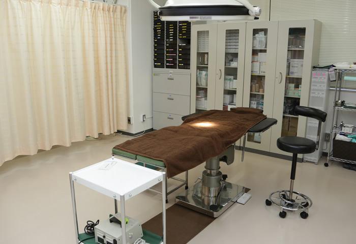 クリニック内の手術で医師・看護師のもと手術を行います。手術室は常に衛生状態を保つよう殺菌・滅菌処理された機材を使用しております。